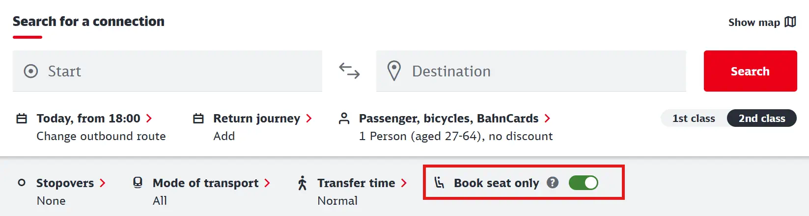 Seat reservations can be purchased via the Deutsche Bahn website. To do so, select the “Book seat only” option in the search.