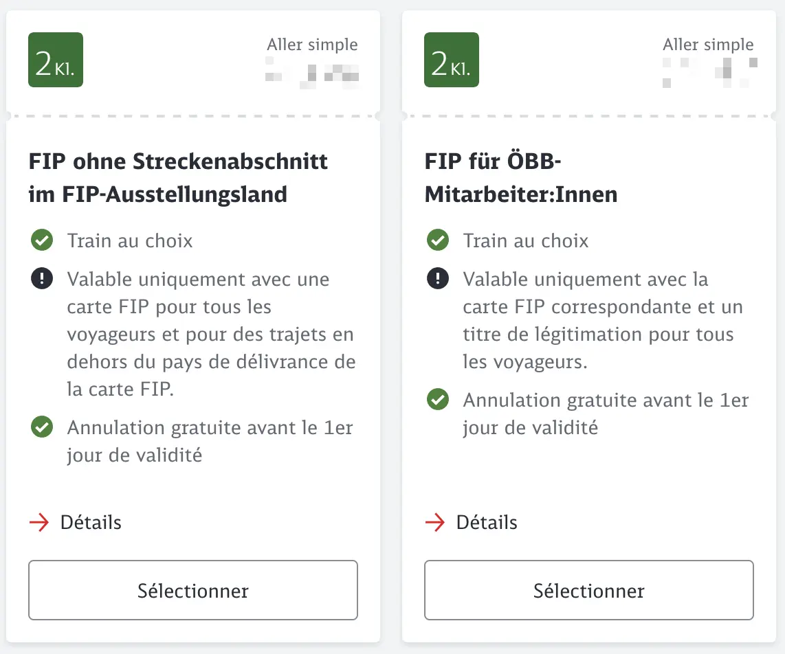 Les Coupons FIP et Billets FIP 50 sont valables sur les trains NS. Pour les trajets transfrontaliers, il faut un Billet FIP 50 continu ou des Coupons FIP valables dans les deux pays.